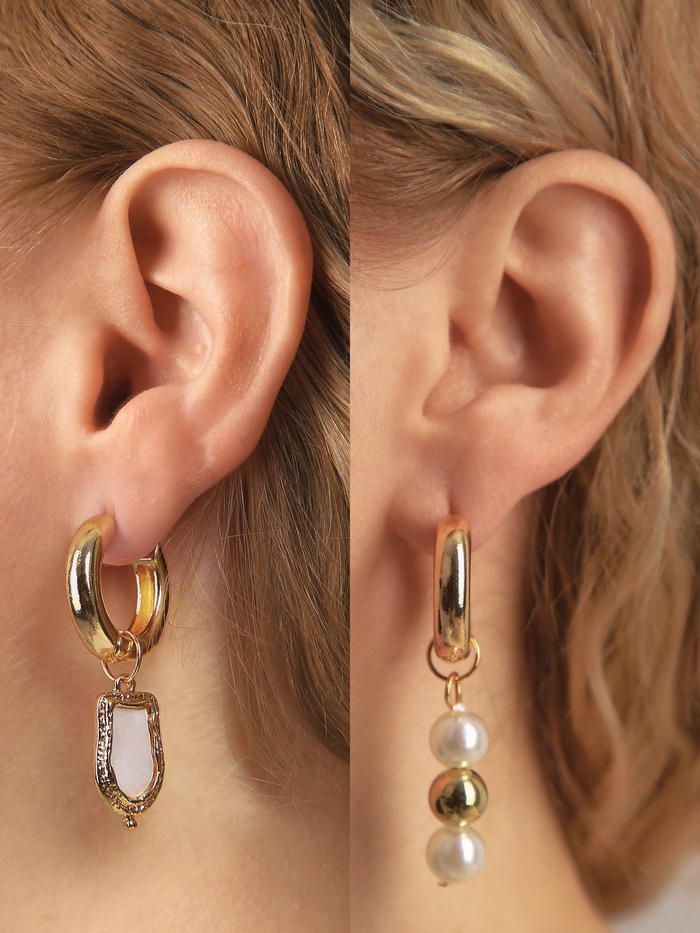 Серьги со съёмным элементом «Трансформер» бусины жемчуга, цвет белый в золоте — Характеристики
