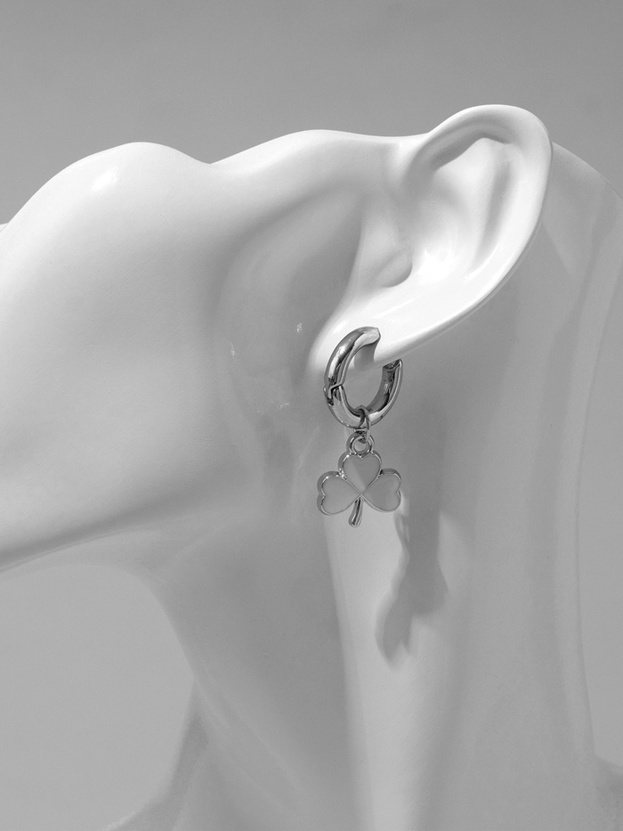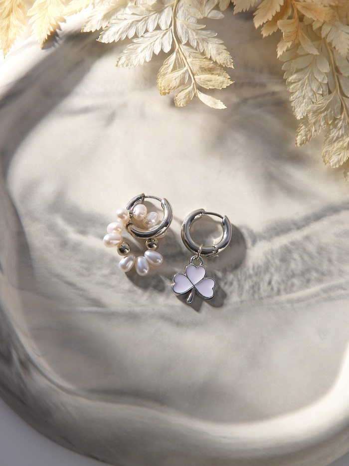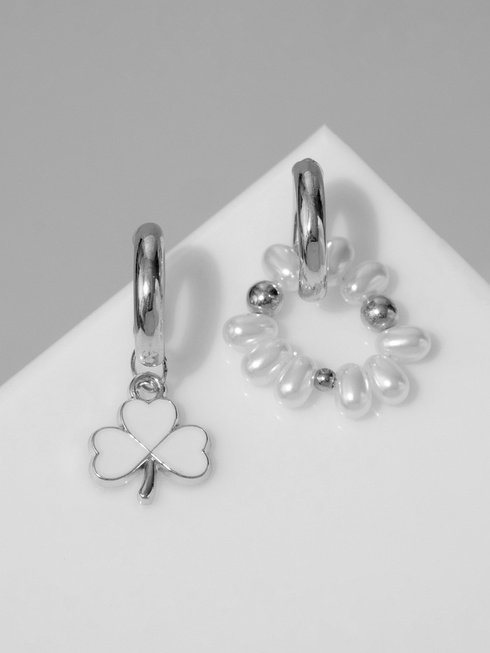 Серьги со съёмным элементом «Трансформер» клевер-сердце, цвет бело-бежевый в серебре — Характеристики