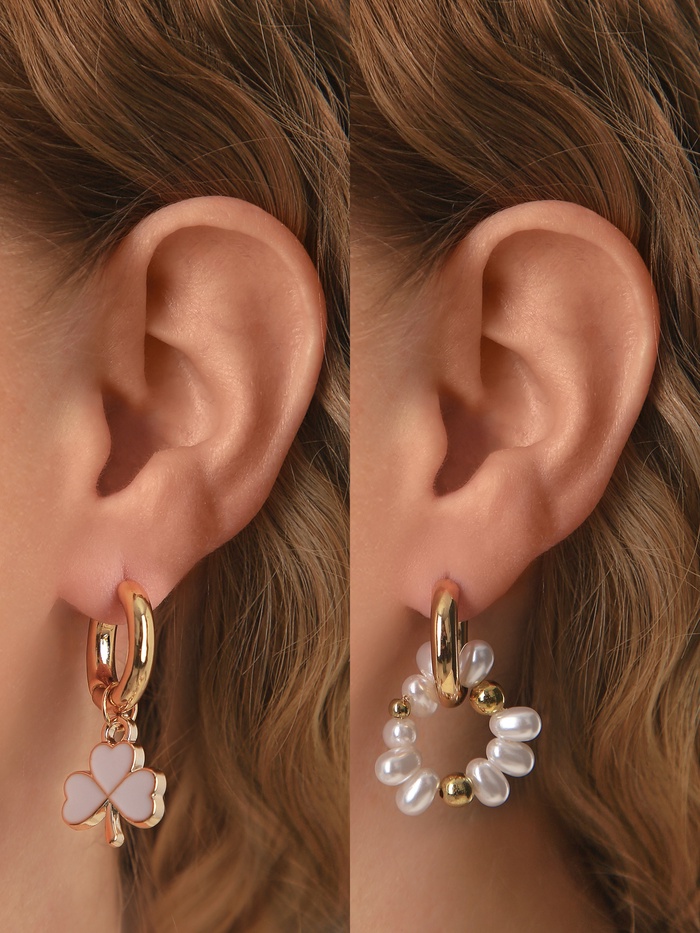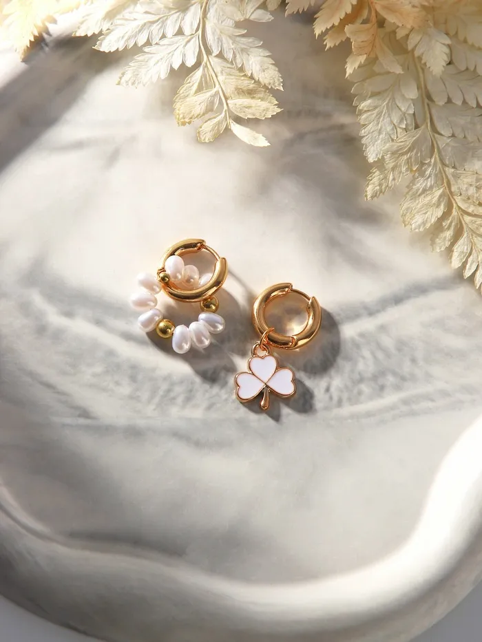 Изысканная модель с трансформируемым дизайном — серьги с элементами в форме клевера и сердца, выполненные в нежных бело-бежевых оттенках на золотой основе. Благодаря съёмным деталям вы легко меняете образ, создавая как лаконичный, так и более выразительный стиль за считанные секунды. Длина 3,2 см оптимальна для комфортного ношения и подчёркивает женственность и утончённость.