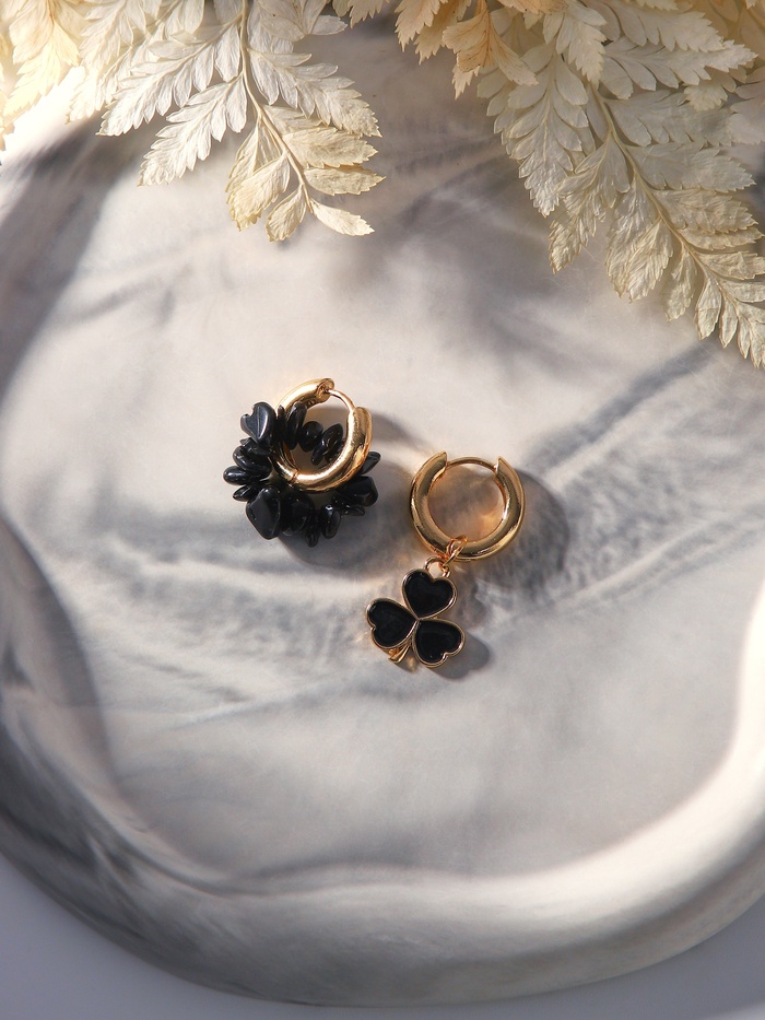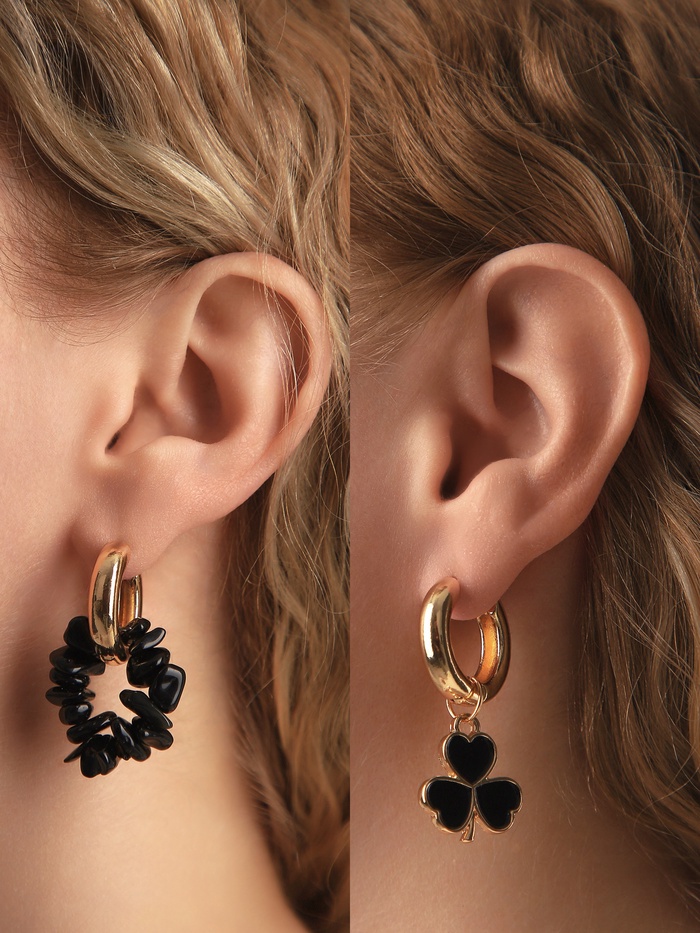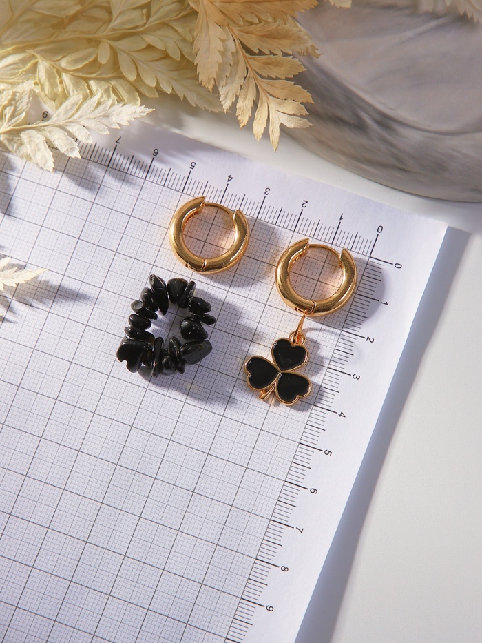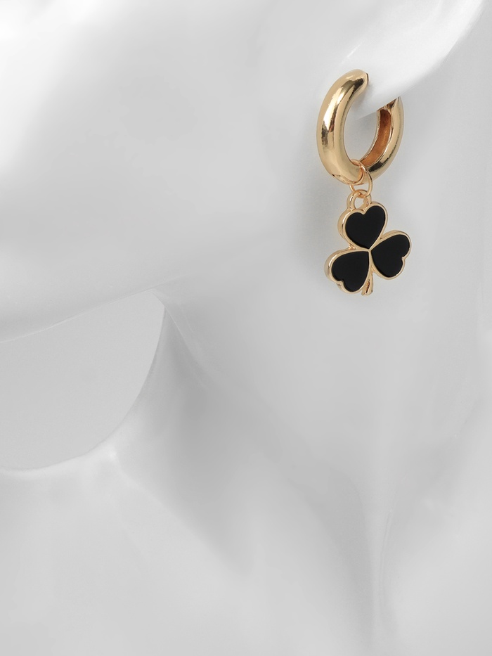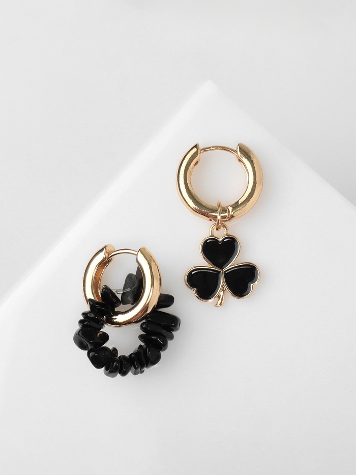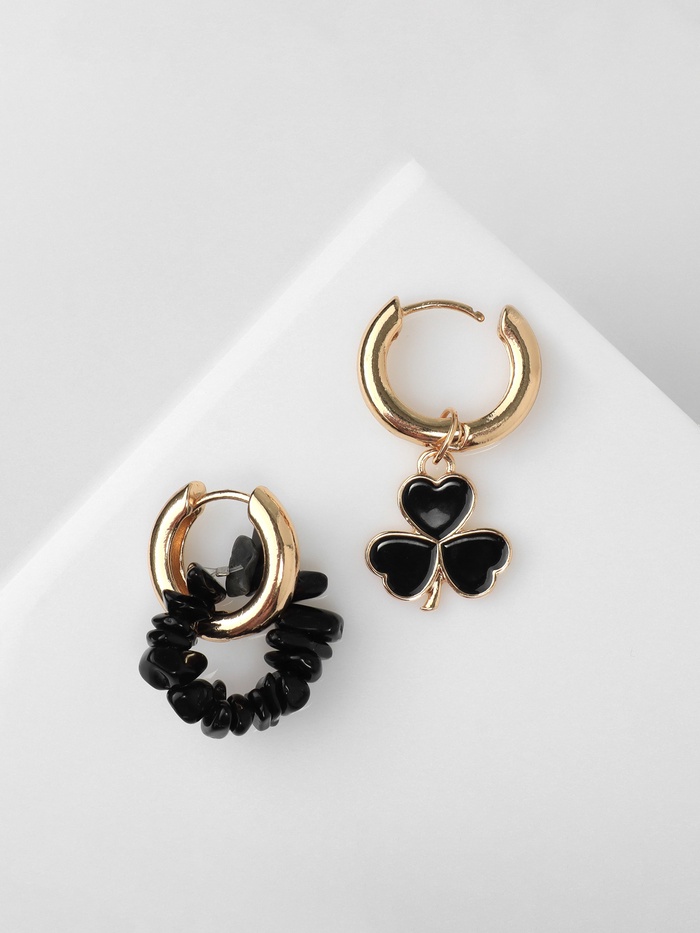 Серьги со съёмным элементом «Трансформер» клевер-сердце, цвет чёрный в золоте — Характеристики