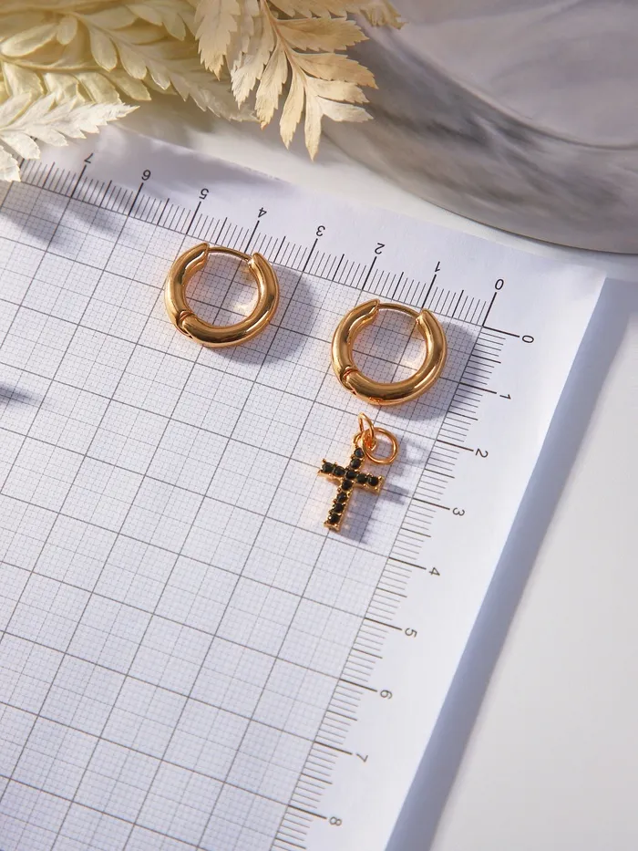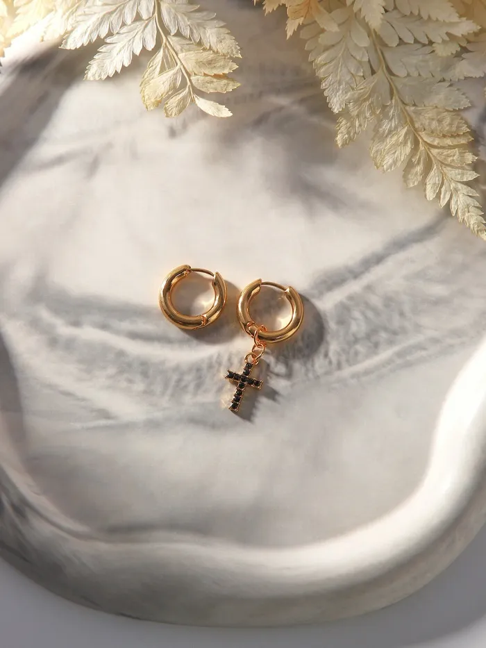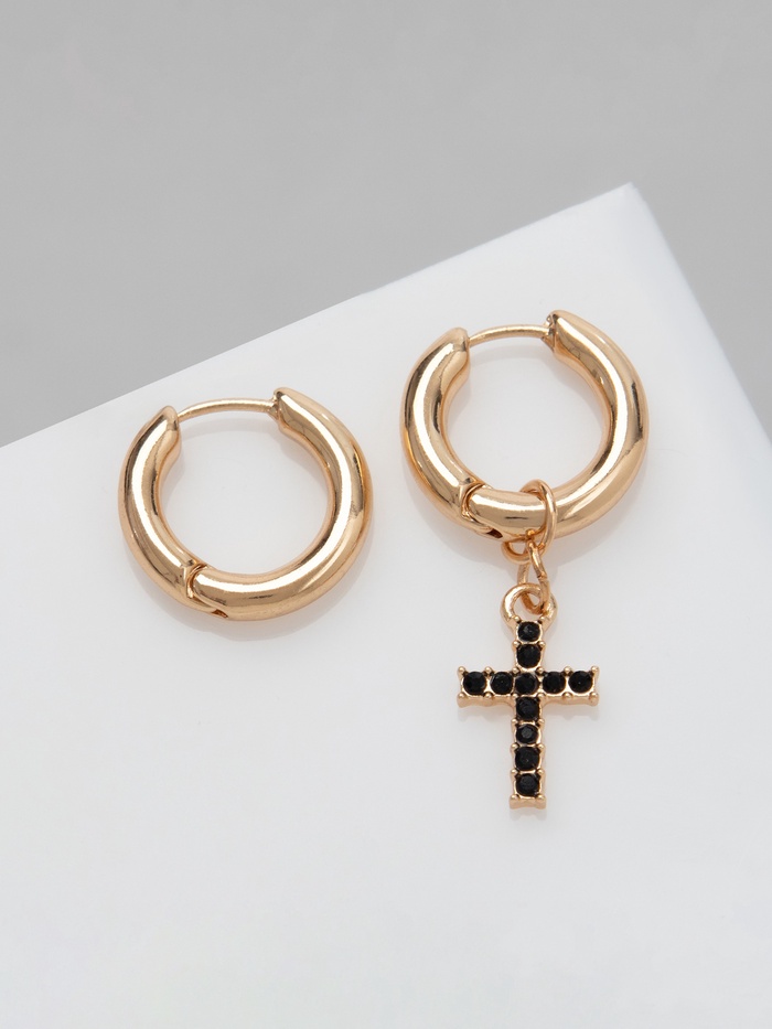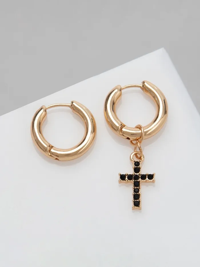 Серьги со съёмным элементом «Трансформер» крест, чёрные в золоте - яркий элемент на Хэллоуин, который порадует любого.