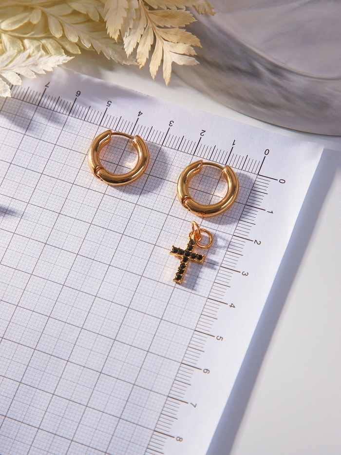 Серьги со съёмным элементом «Трансформер» крест, чёрные в золоте — Характеристики