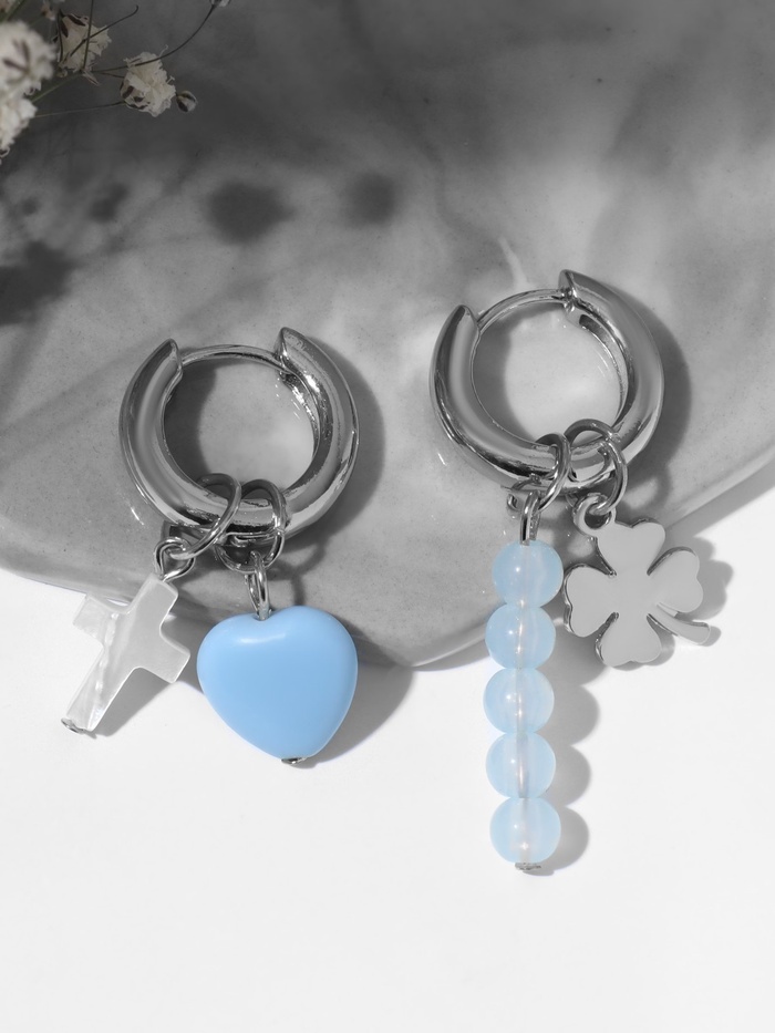 Серьги со съёмным элементом «Трансформер» крестик, цвет бело-голубой в серебре — Характеристики