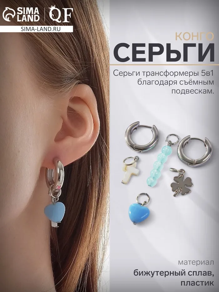 • Комфортная застёжка-конго: надёжно фиксирует украшение и удобно сидит на ухе в течение всего дня.