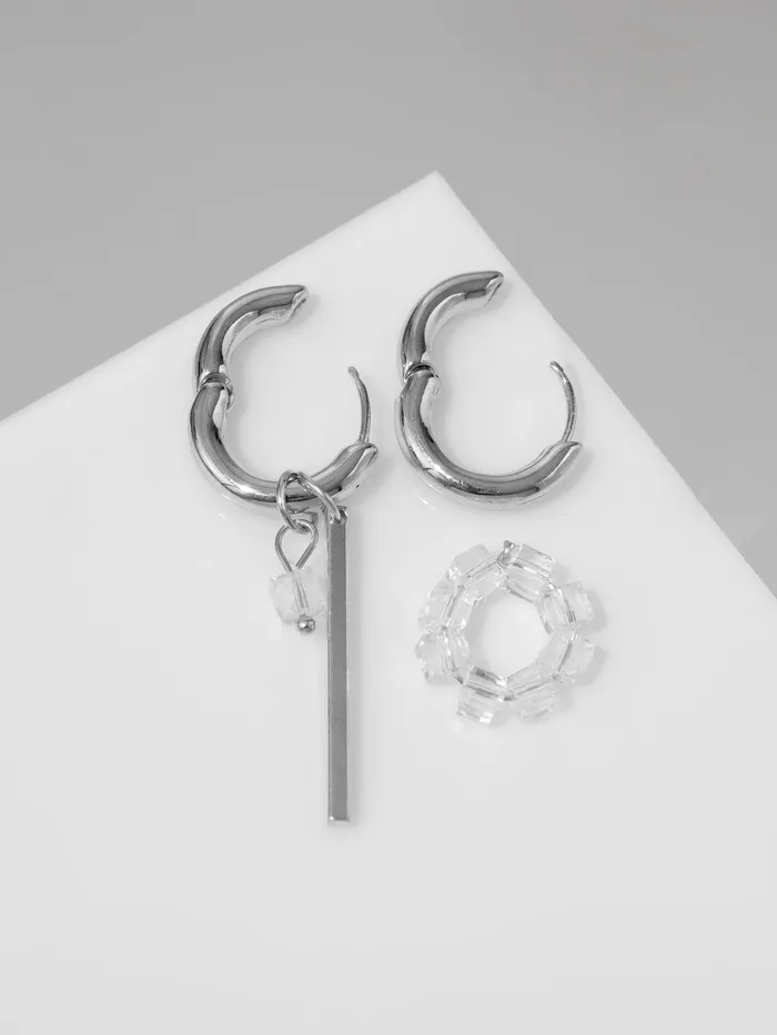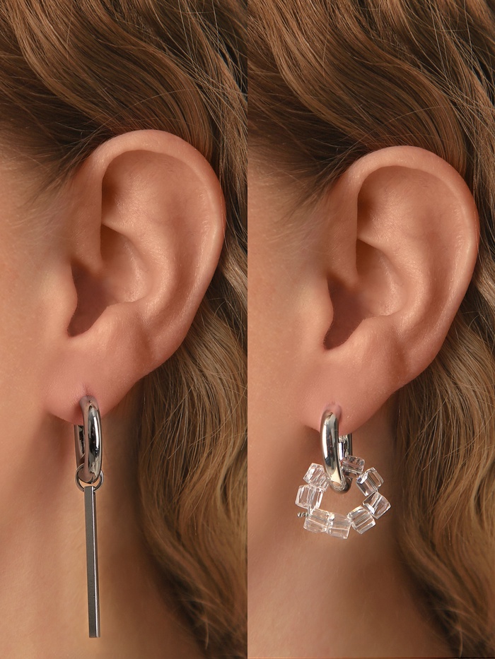 Серьги со съёмным элементом «Трансформер» круг, белые в серебре — Характеристики