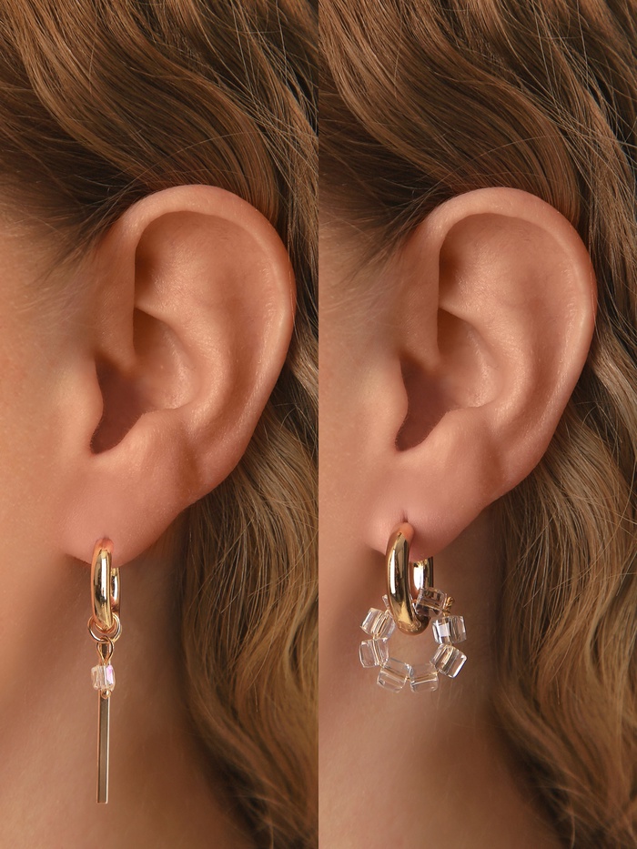 Серьги со съёмным элементом «Трансформер» круг, белые, золоте — Характеристики