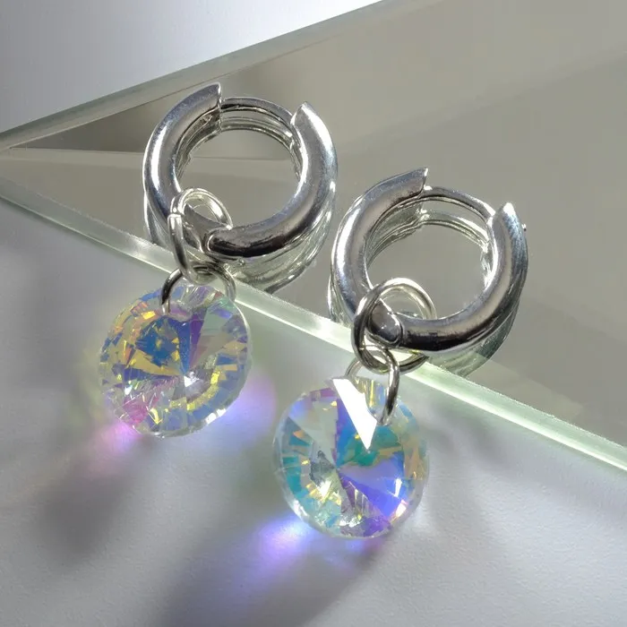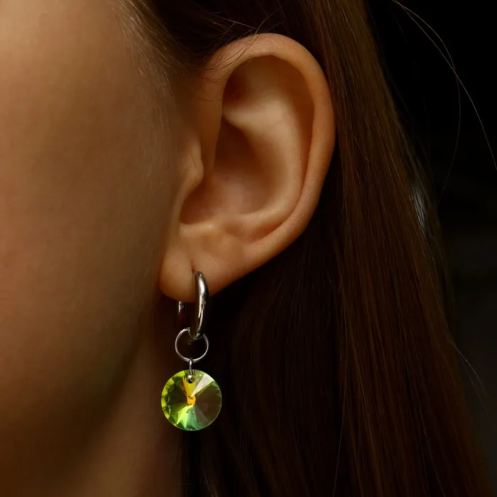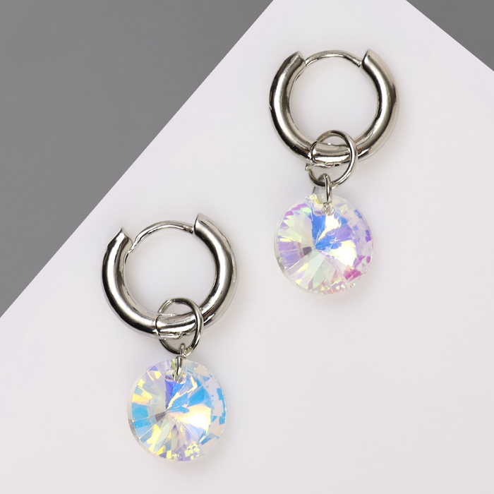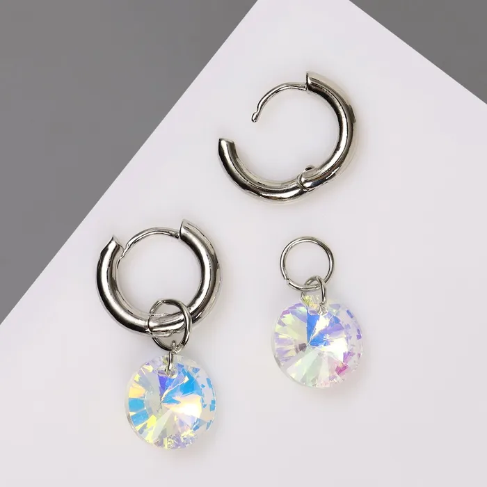 Серьги со съёмным элементом «Трансформер» круглый кристаллик, радужные в серебре — Характеристики