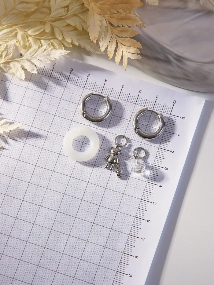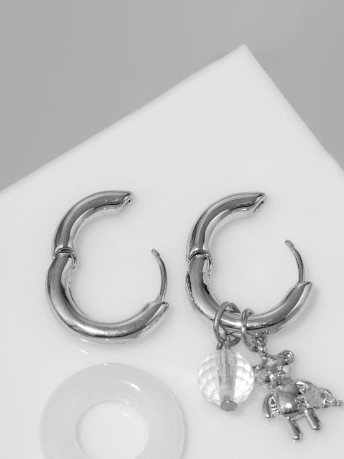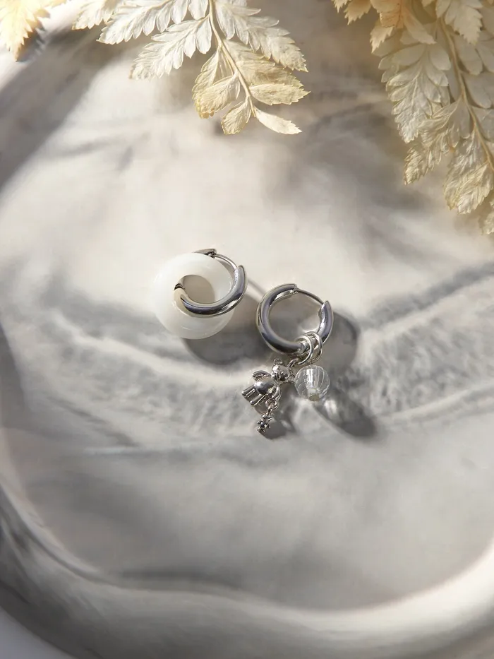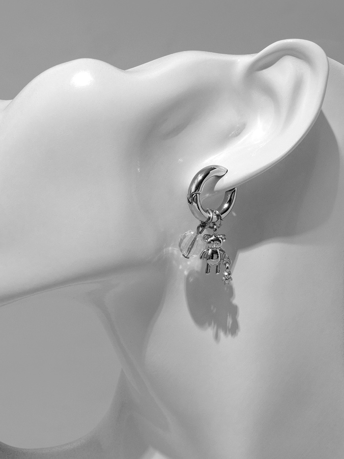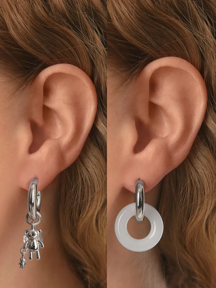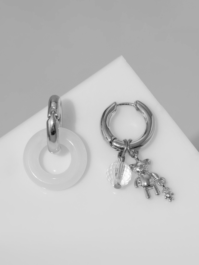 Серьги со съёмным элементом «Трансформер» мишка и диско-шар, белые в серебре — Характеристики