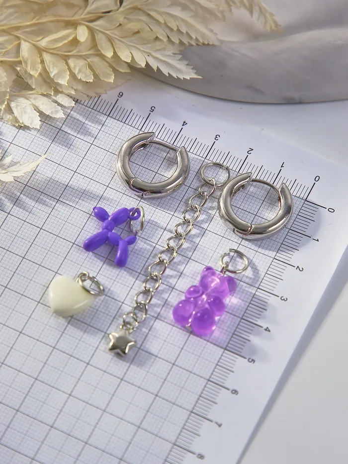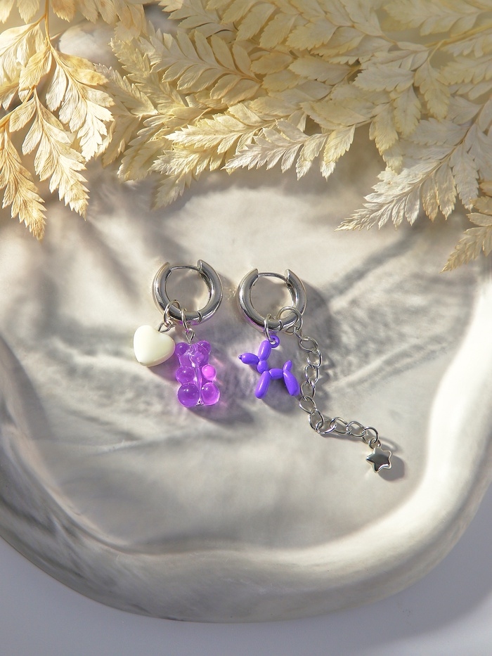 Яркие серьги с разноцветными элементами в виде медвежонка и собачки на серебристой основе — отличный способ добавить игривости и оригинальности в повседневный образ. Длина 6,1 см делает украшение заметным, но при этом комфортным для ношения в течение всего дня.