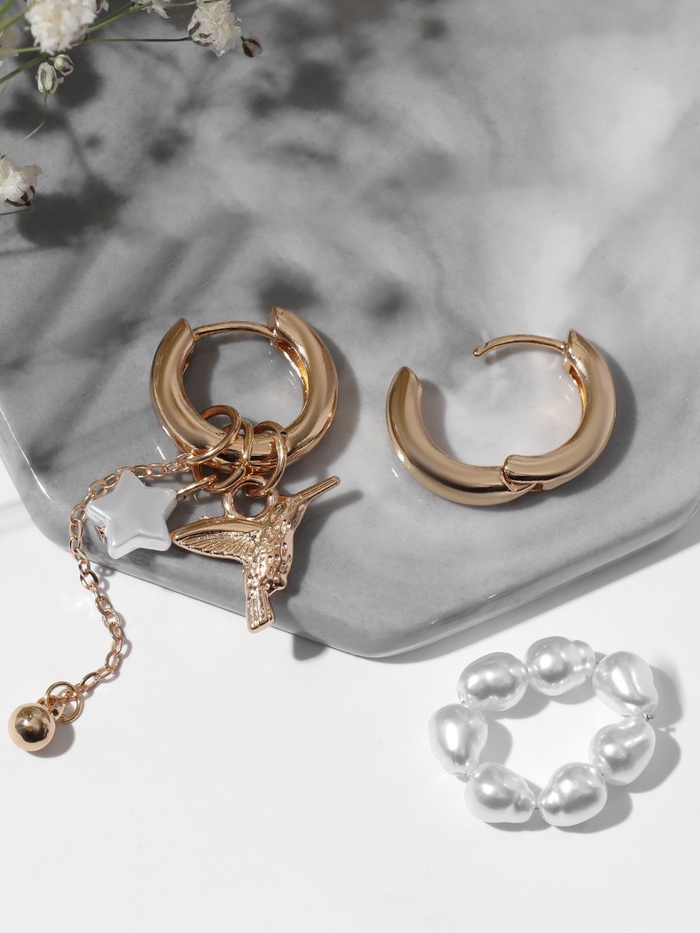Серьги со съёмным элементом «Трансформер» птица, цвет белый в золоте — Характеристики