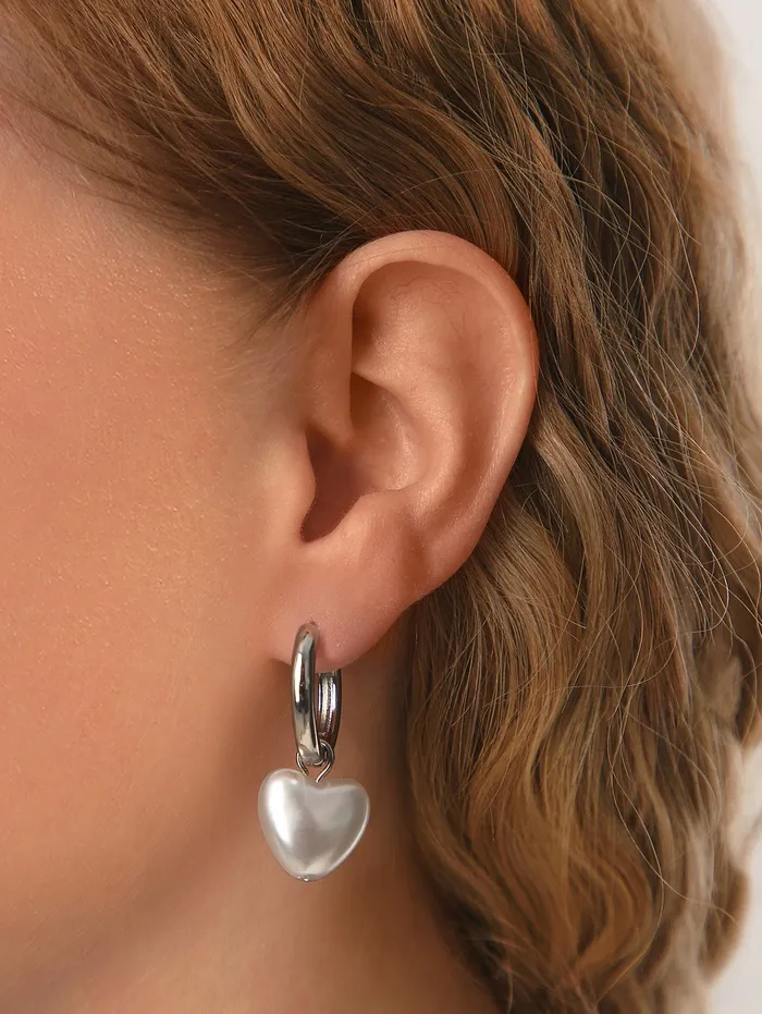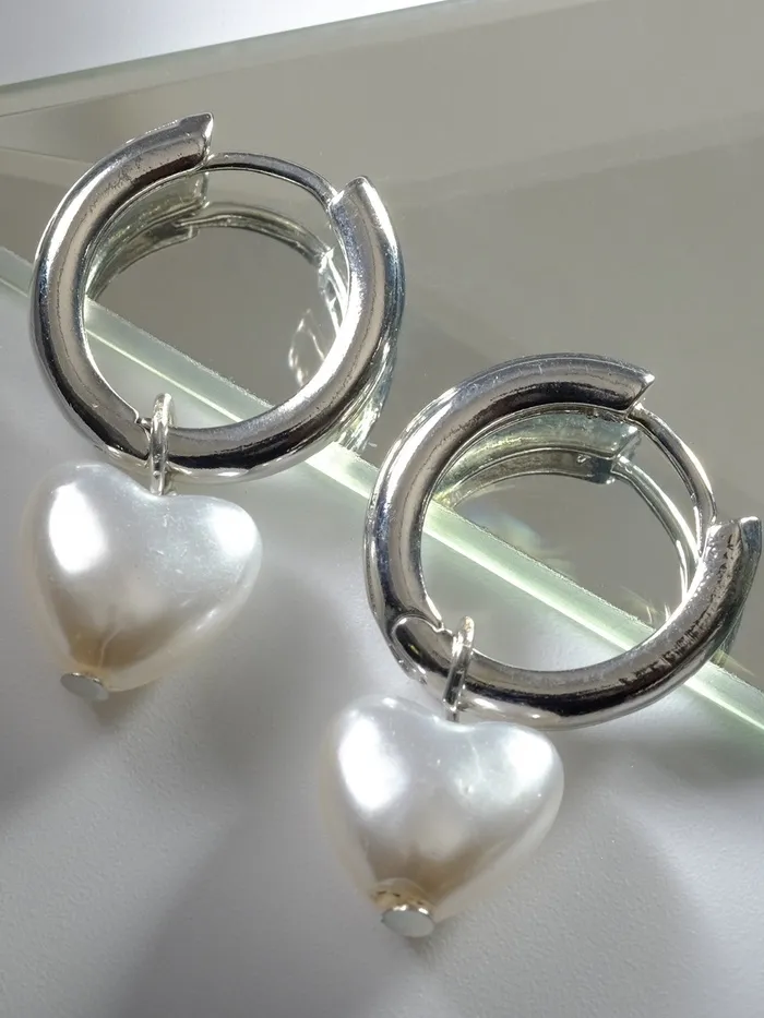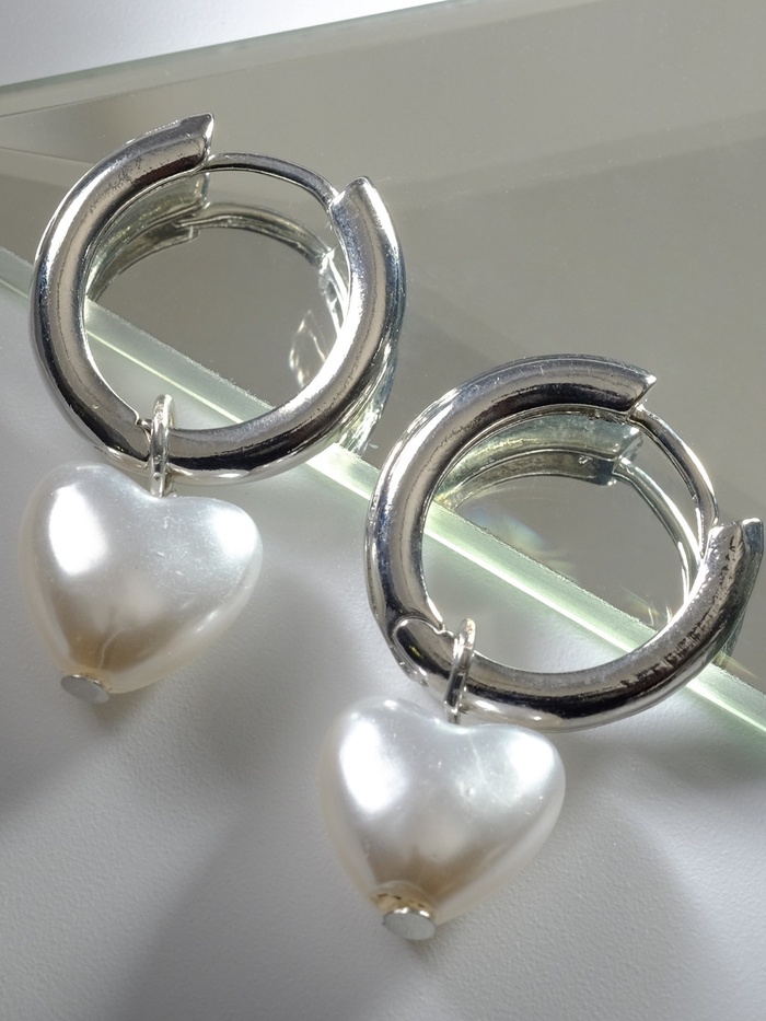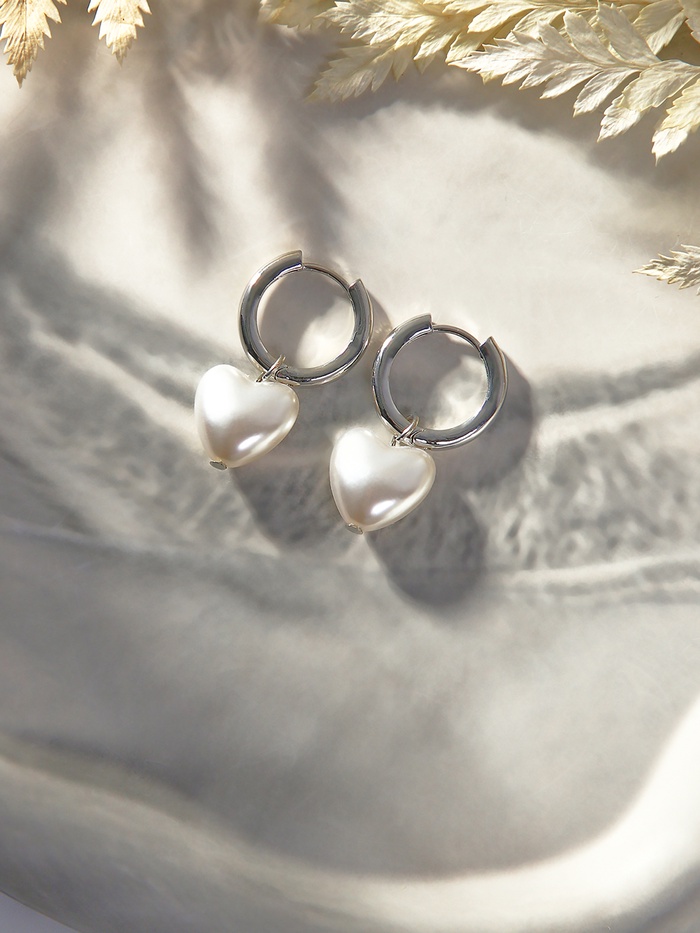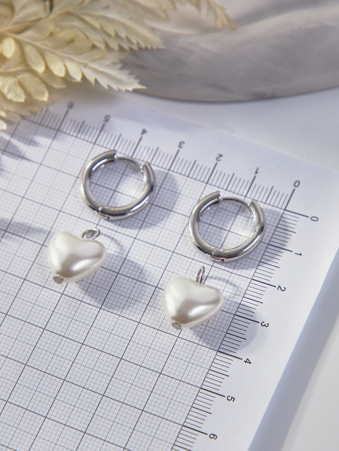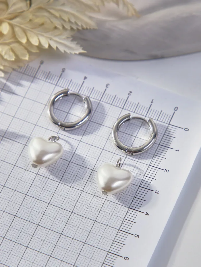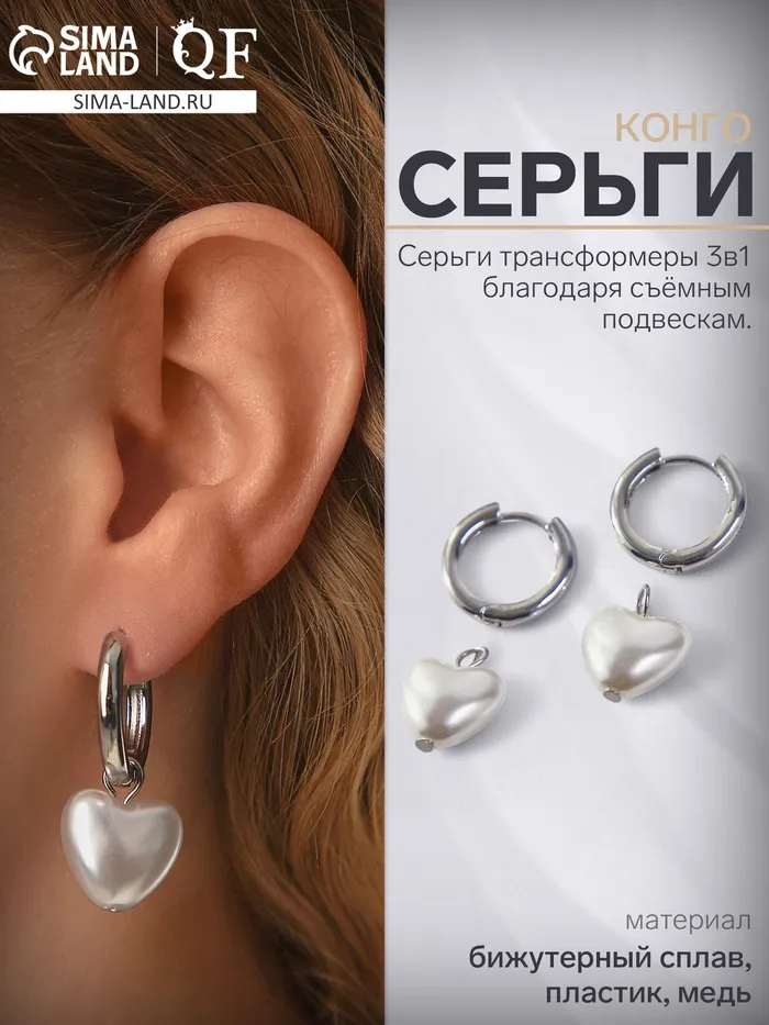 Серьги со съёмным элементом «Трансформер» сердечко жемчужное, цвет белый в серебре — Характеристики