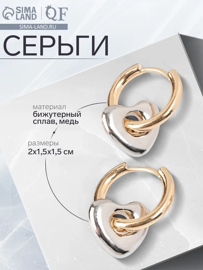 Серьги со съёмным элементом «Трансформер» сердце, цвет золото с серебром — Характеристики