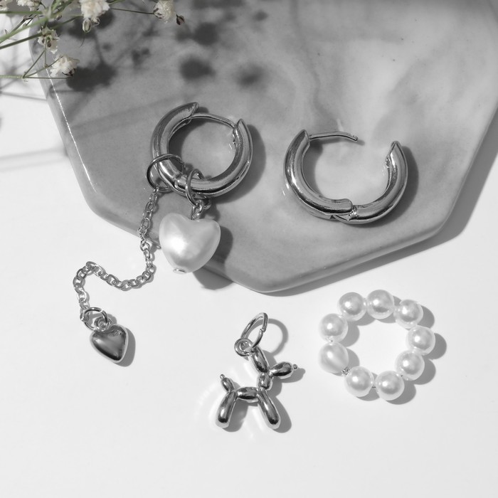 Серьги со съёмным элементом «Трансформер» собачка, цвет белый в серебре — Характеристики