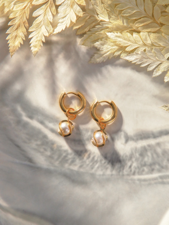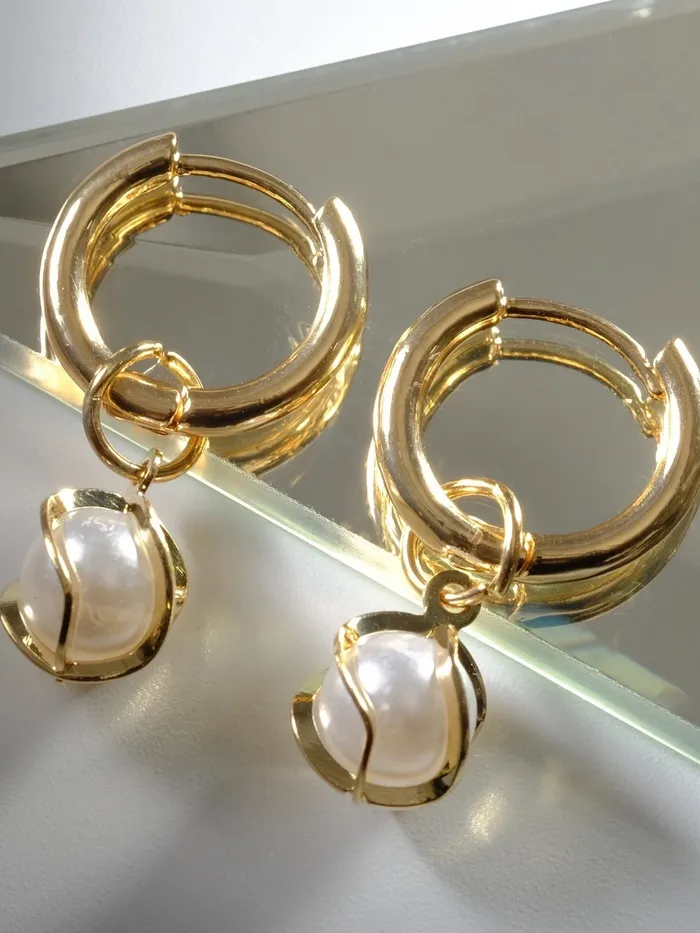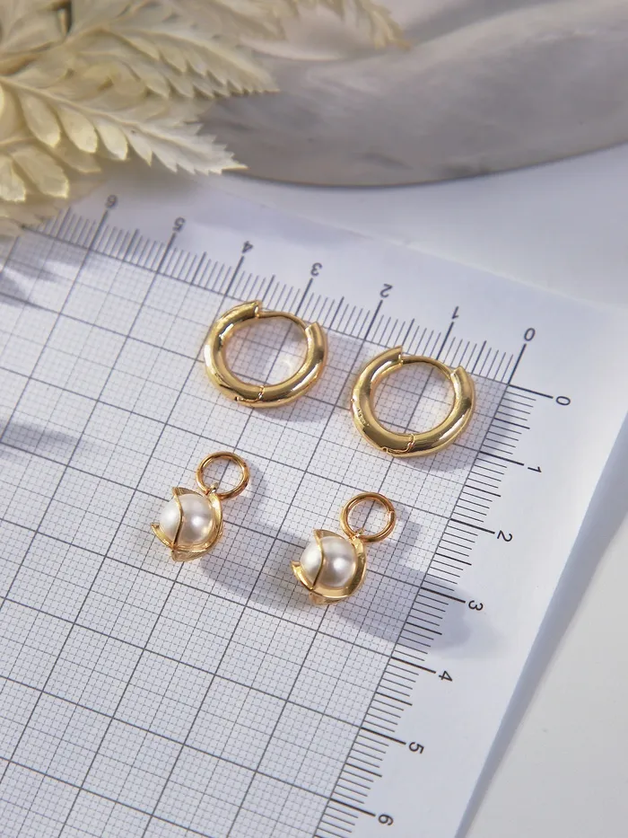 Серьги со съёмным элементом «Трансформер» жемчужина в нитях, белые в золоте — Характеристики