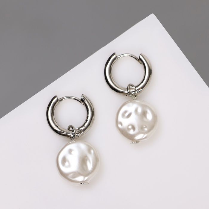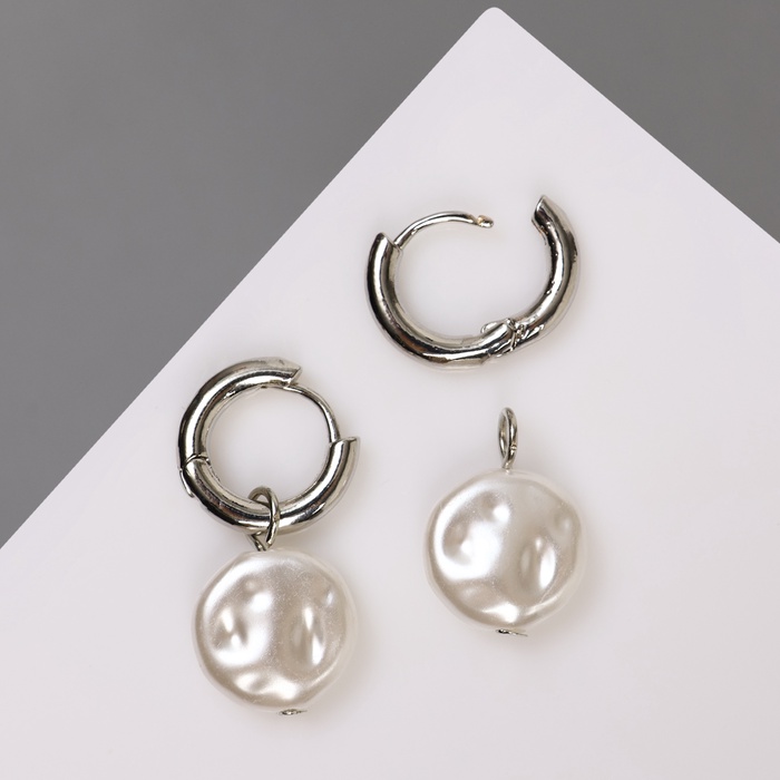 Серьги со съёмным элементом «Трансформер» жемчужный диск, цвет белый в серебре