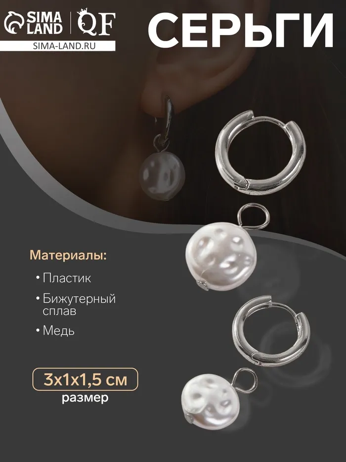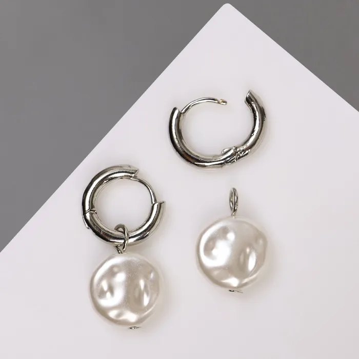 Серьги со съёмным элементом «Трансформер» жемчужный диск, цвет белый в серебре — Характеристики