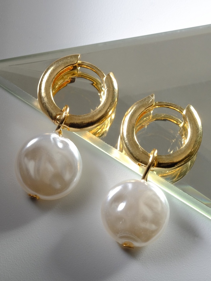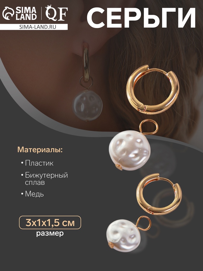 Серьги со съёмным элементом «Трансформер» жемчужный диск, цвет белый в золоте — Характеристики