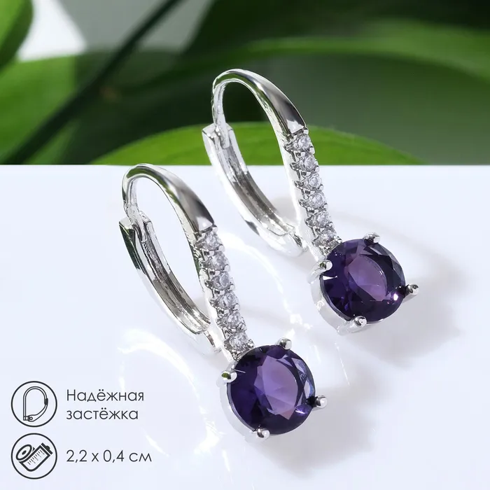 Серьги со стразами «Анютины глазки» сиреневые в серебре — Характеристики