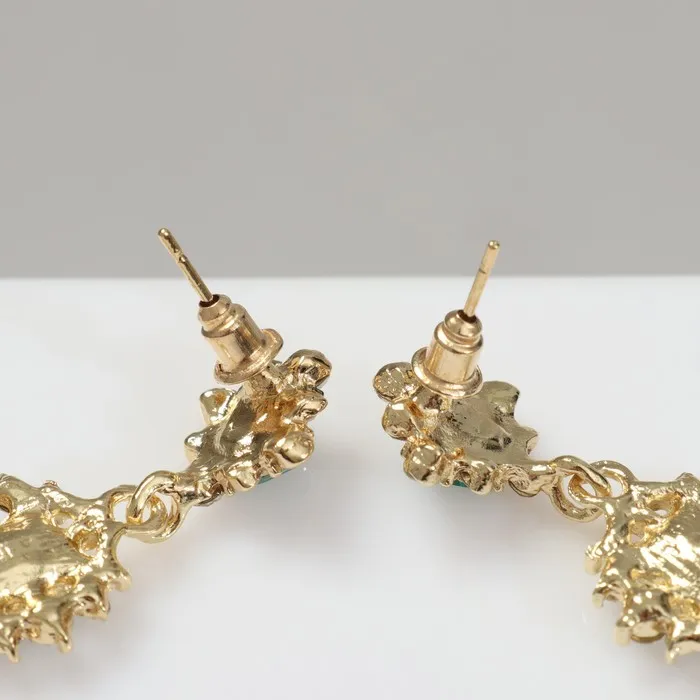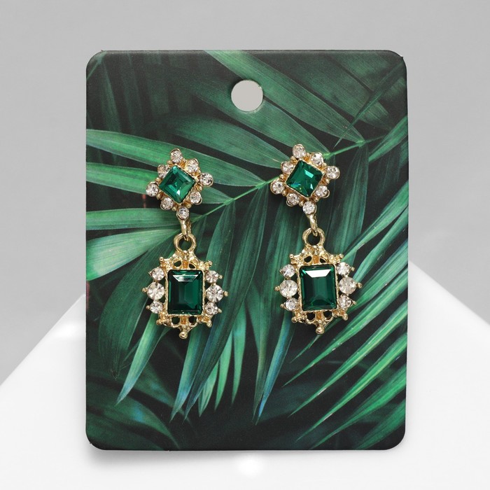 Серьги со стразами «Ажур» дуэт, цвет изумрудный в золоте — Характеристики