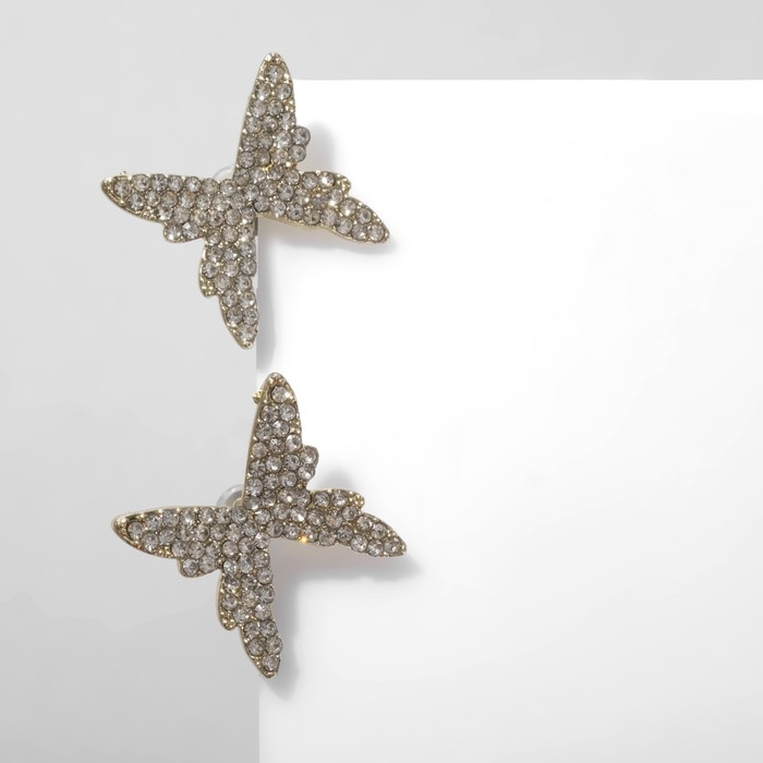 Серьги со стразами «Бабочки» малыши, белые в золоте — Характеристики