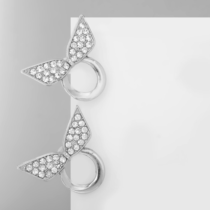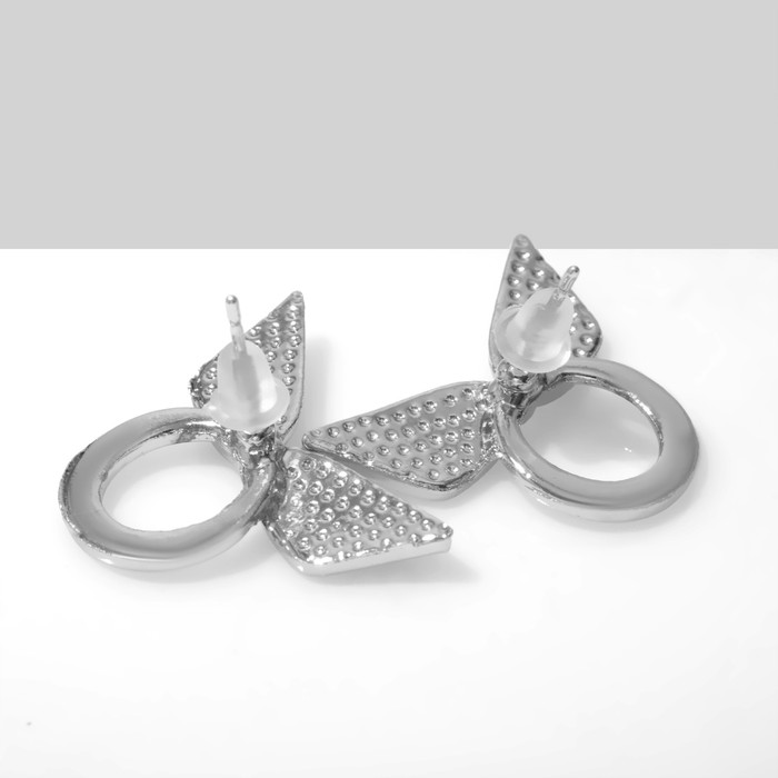 Серьги со стразами «Бантик на кольце», белые в серебре — Характеристики