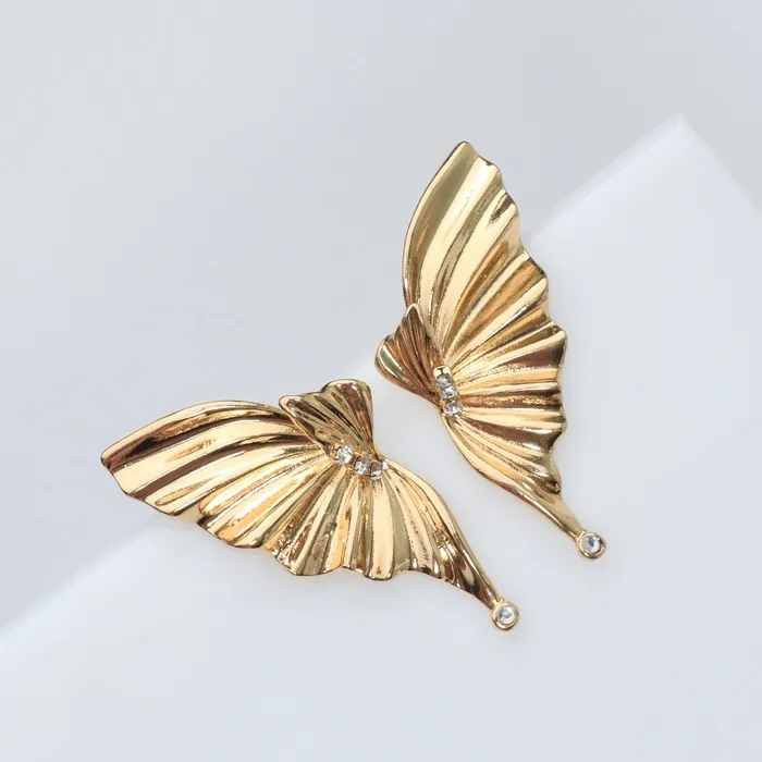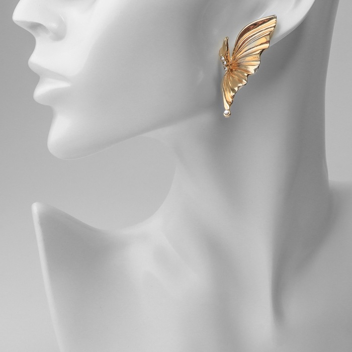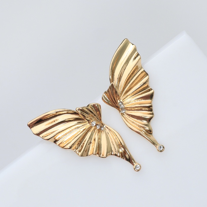Серьги со стразами «Бантики» крылья, белые в золоте — Характеристики
