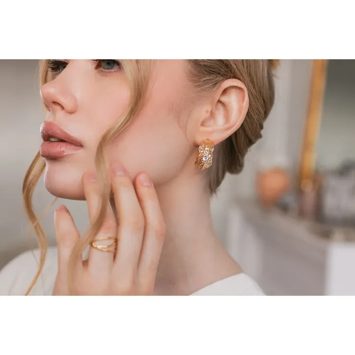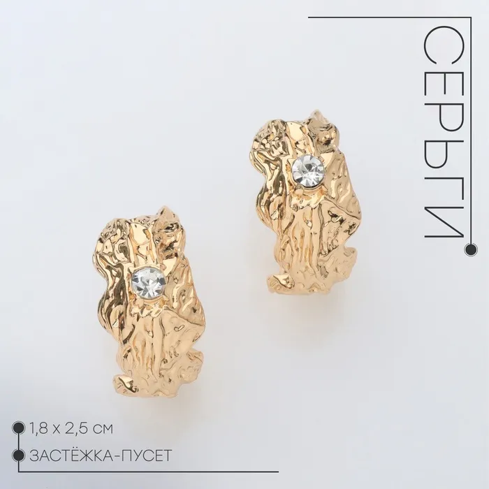 Серьги со стразами «Бесконечность» полусфера, белые в золоте — Характеристики