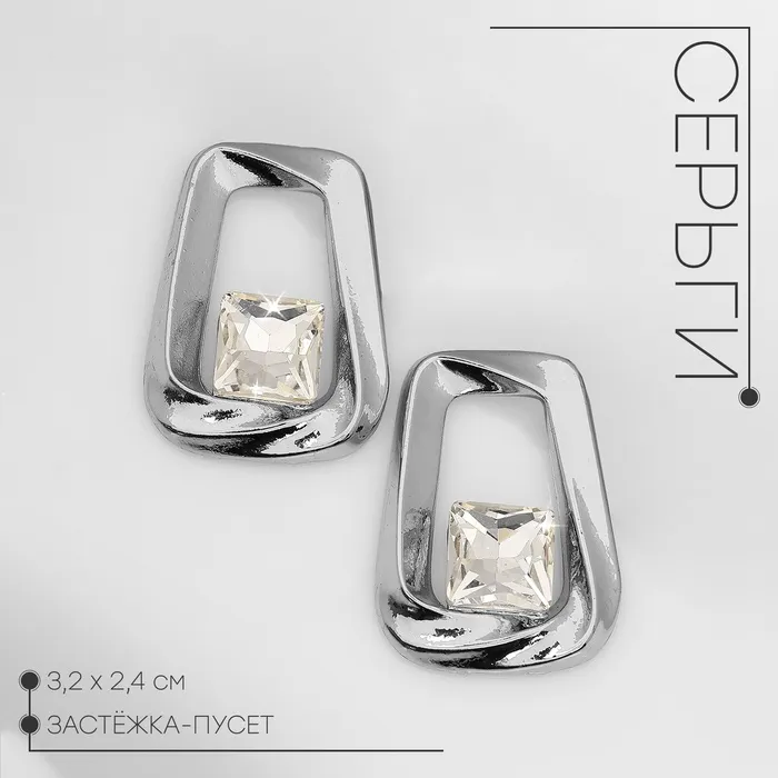 Серьги со стразами «Блеск вечера» первая леди, белые в серебре — Характеристики