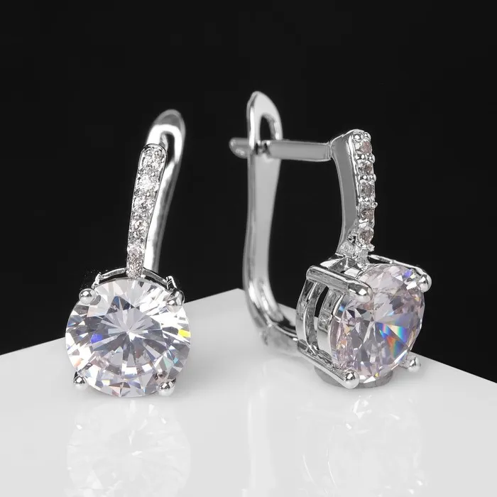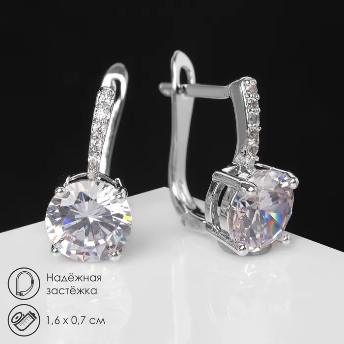 Серьги со стразами «Блум» классика, мини круг, белые в серебре — Характеристики