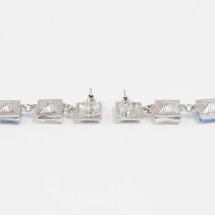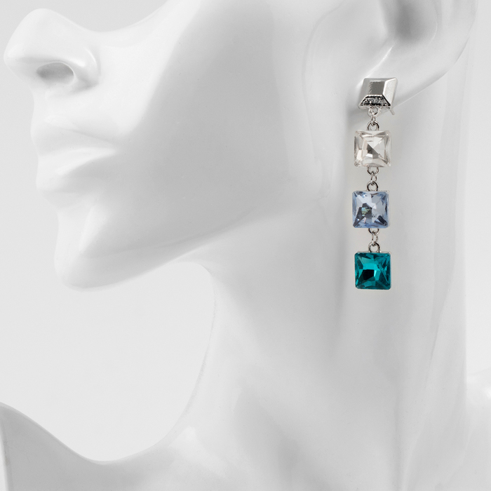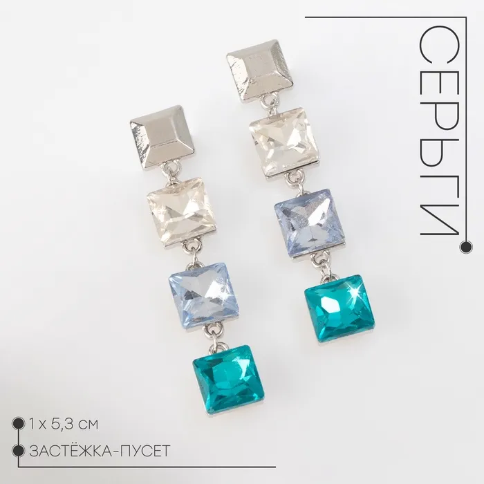 Серьги со стразами «Блум» квадраты светлые, цветные в серебре — Характеристики
