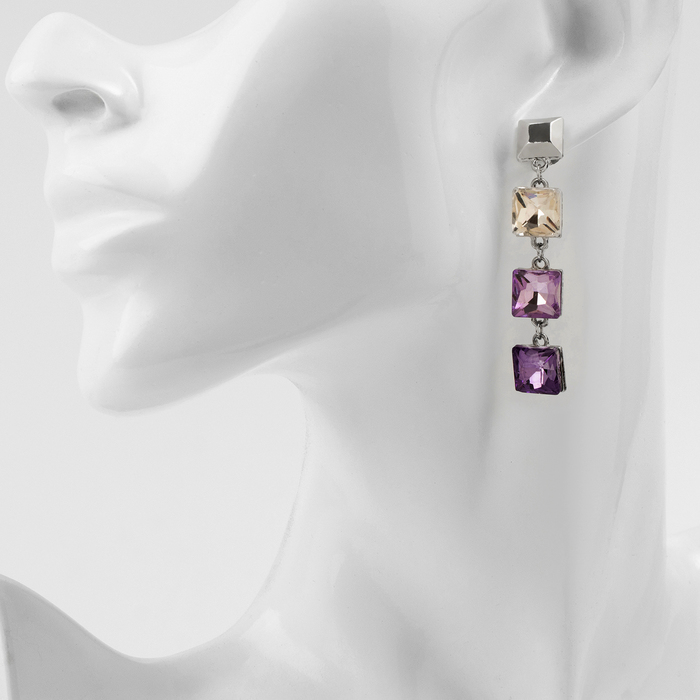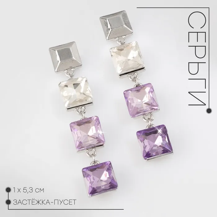 Серьги со стразами «Блум» квадраты тёмные, цветные в серебре — Характеристики