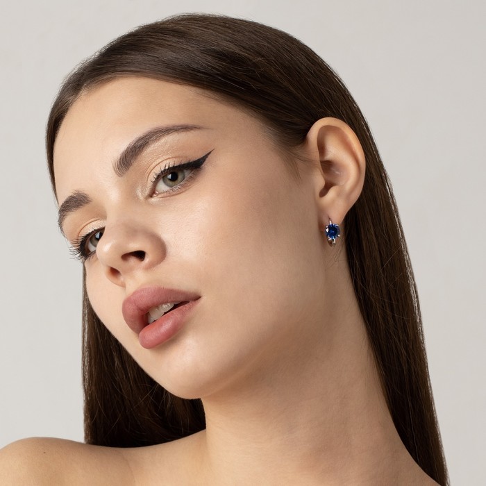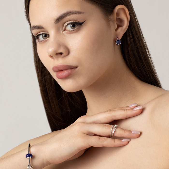 Серьги со стразами «Блум», синие в серебре — Характеристики