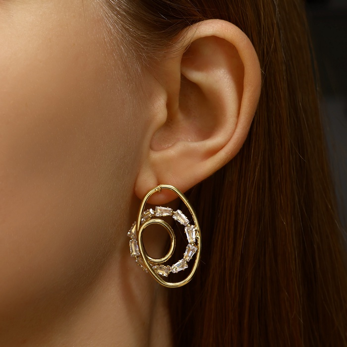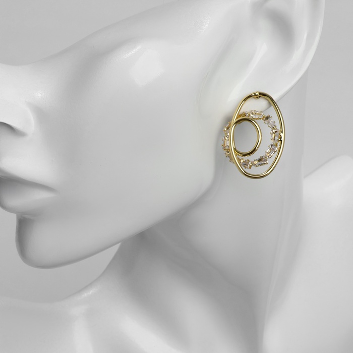 Серьги со стразами «Блум» тройной круг, белый в золоте — Характеристики