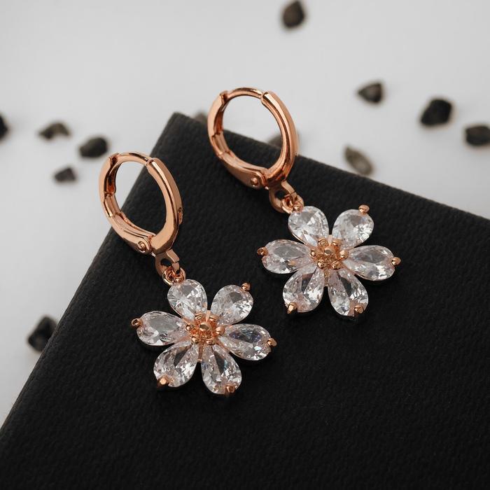 Серьги со стразами «Большой бриллиант» цветок, миксы — Характеристики
