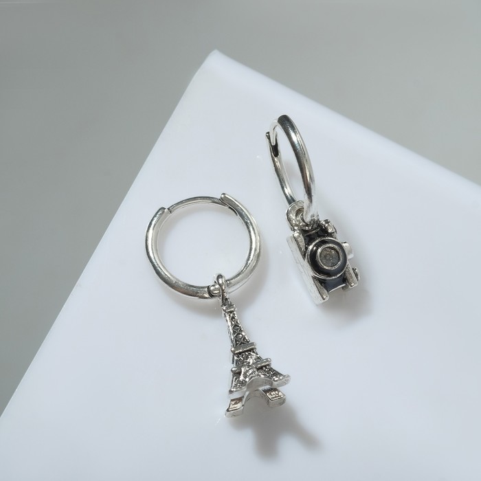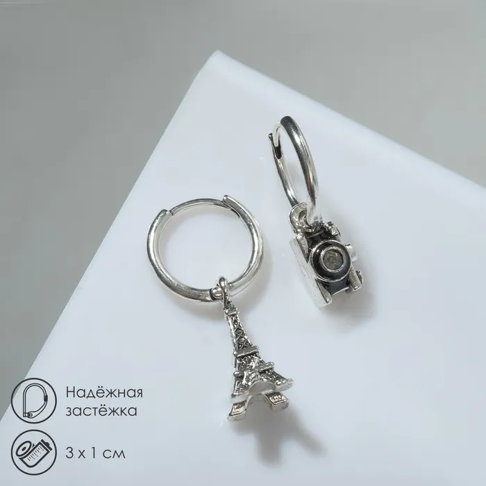 Серьги со стразами «Брелок» Эйфелева башня, цвет белый в серебре — Характеристики