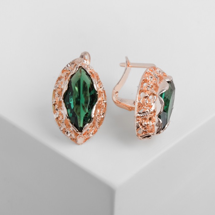 Серьги со стразами «Эдель» эллипс ажурный, цвет изумрудный в розовом золоте — Характеристики