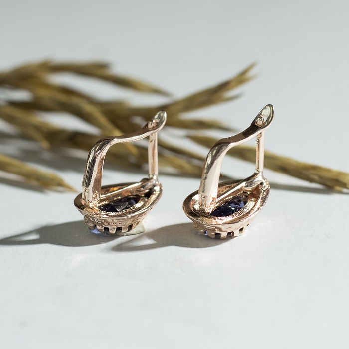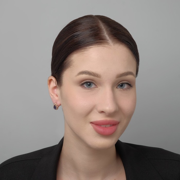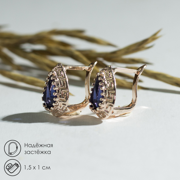 Серьги со стразами «Эдель» капля, цвет тёмно-синий в золоте — Характеристики