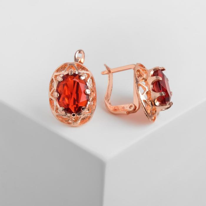 Серьги со стразами «Эдель» овал ажурный, красные в розовом золоте — Характеристики