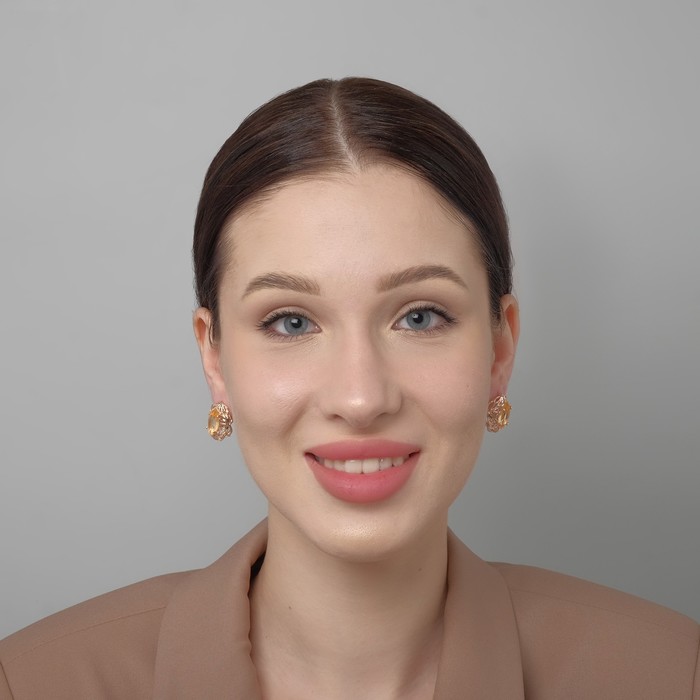 Серьги со стразами «Эдель» овал с камнем, светло-коричневые в золоте — Характеристики
