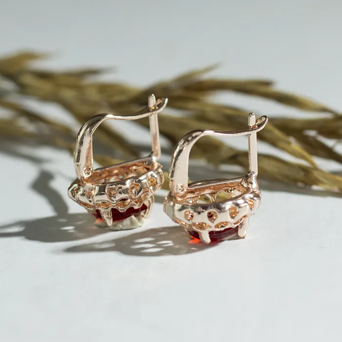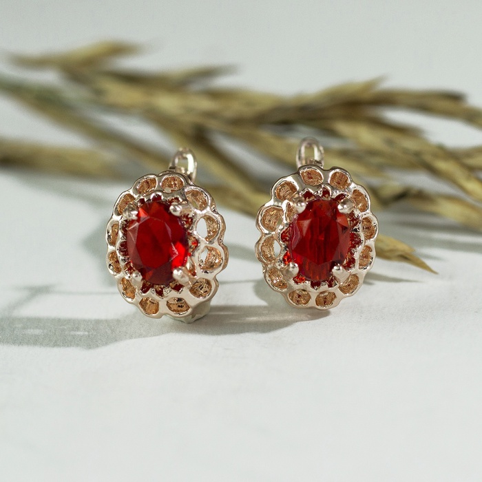 Серьги со стразами «Эдель» овал в ажуре, цвет красный в золоте — Характеристики