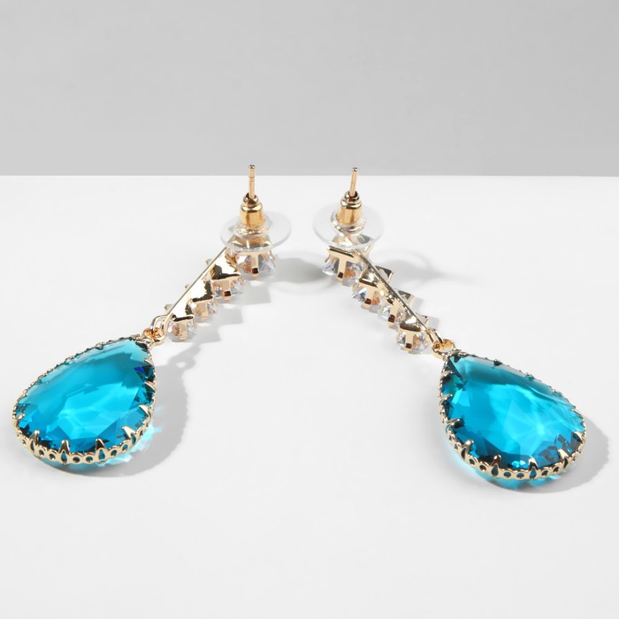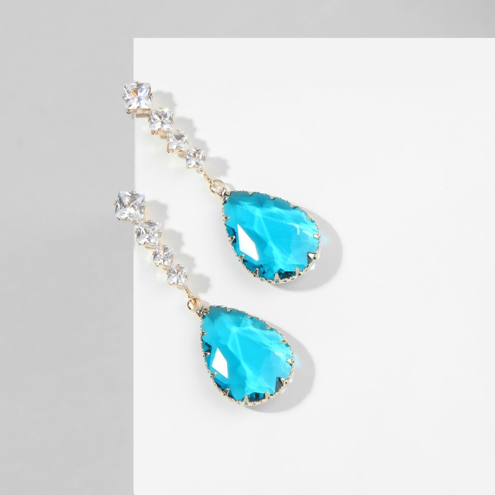 Серьги со стразами «Эдем» капля, цвет бело-голубой в золоте — Характеристики