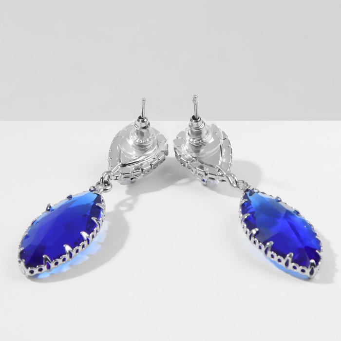 Серьги со стразами «Эдем» миндаль, бело-синие в серебре — Характеристики