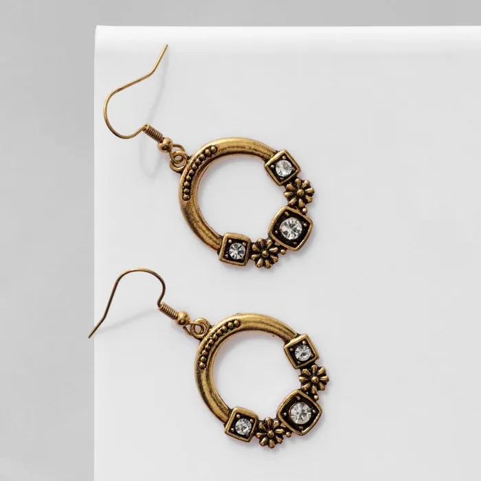 Серьги со стразами «Этника» цветочный круг, белые в чернёном золоте — Характеристики