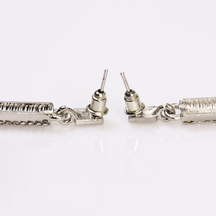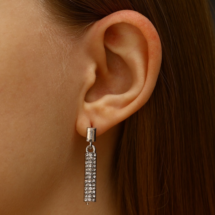 Серьги со стразами «Геометрия» тонкий цилиндр, белые в серебре — Характеристики