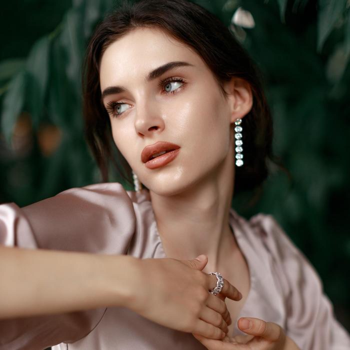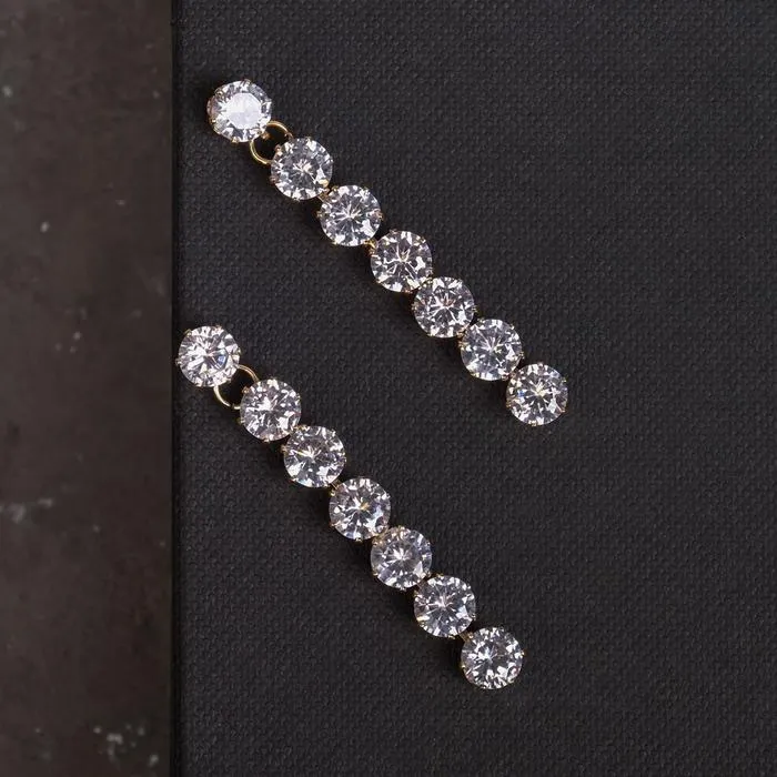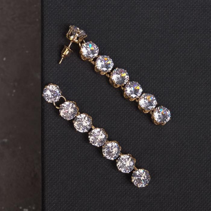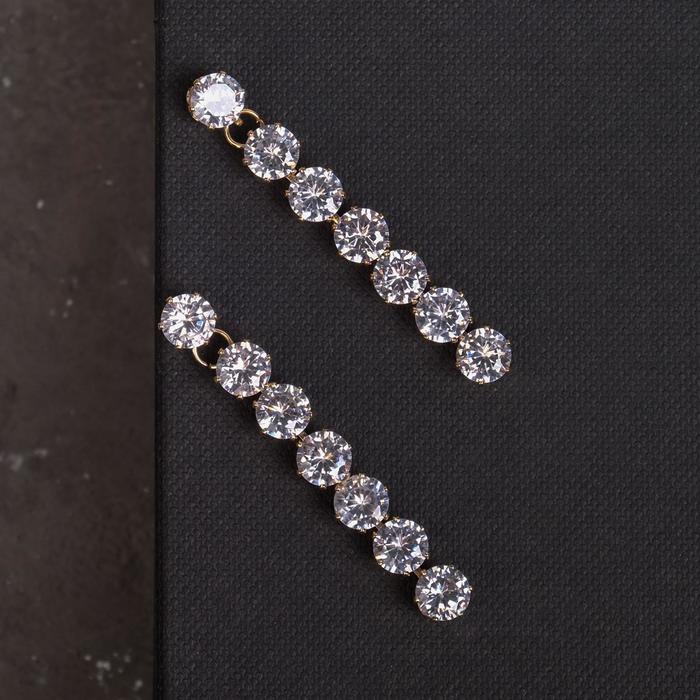 Серьги со стразами «Голливуд» дорожка, белые в золоте — Характеристики