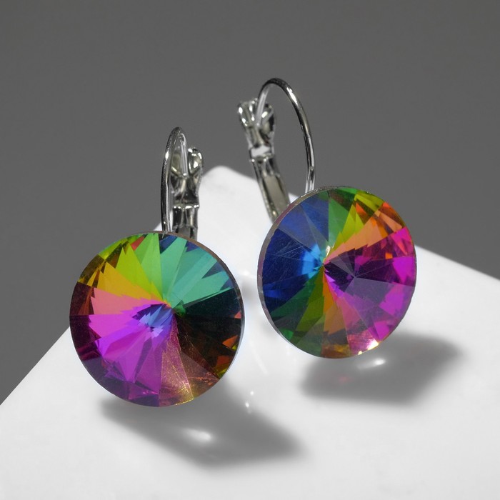 Серьги со стразами «Яркая классика», бензиновые в серебре, d=1.6 см — Характеристики