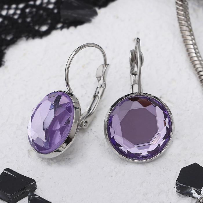 Серьги со стразами «Яркая классика» в обрамлении, сиреневые в серебре, d=1.4 см — Характеристики