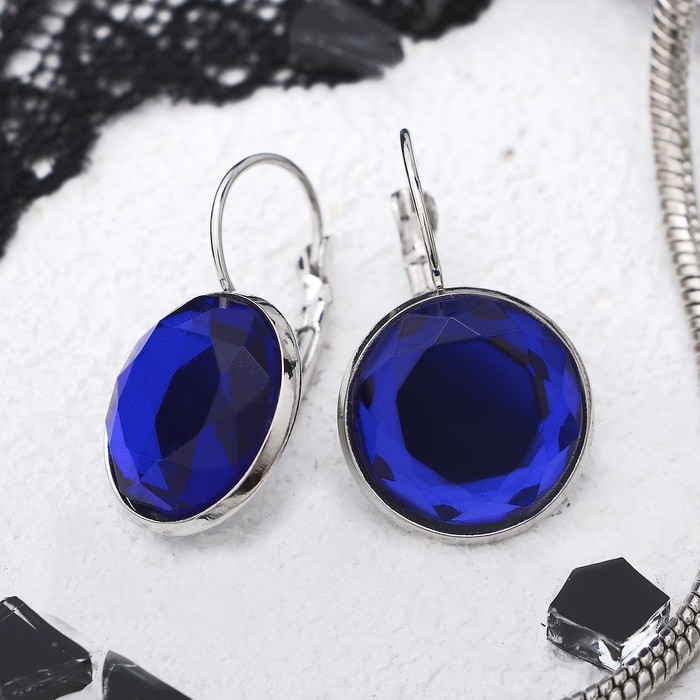 Серьги со стразами «Яркая классика» в обрамлении, цвет тёмно-синий в серебре, d=1.6 см — Характеристики