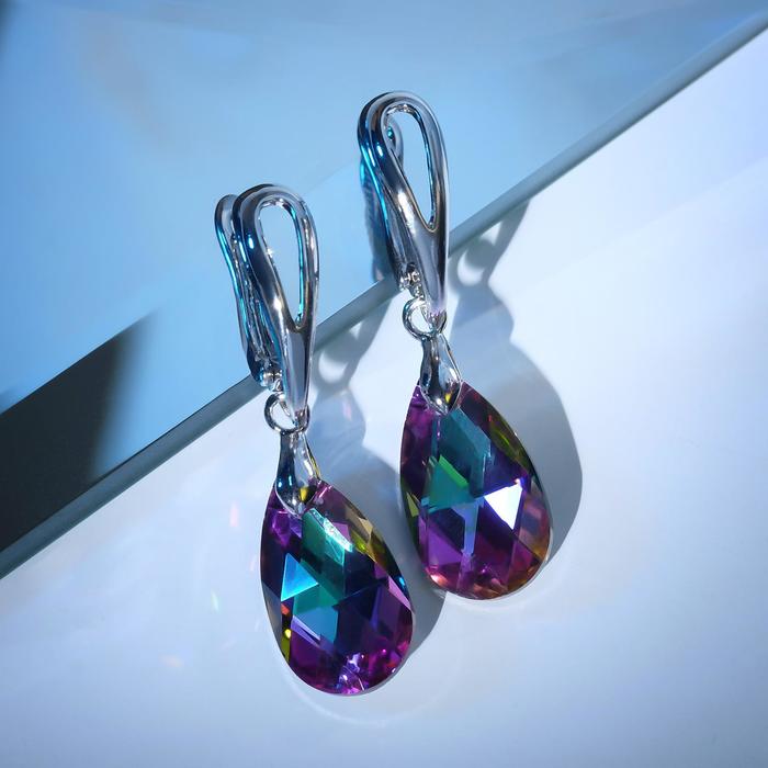 Серьги со стразами «Иллюзион» капля фиолетово-зелёные в серебре — Характеристики