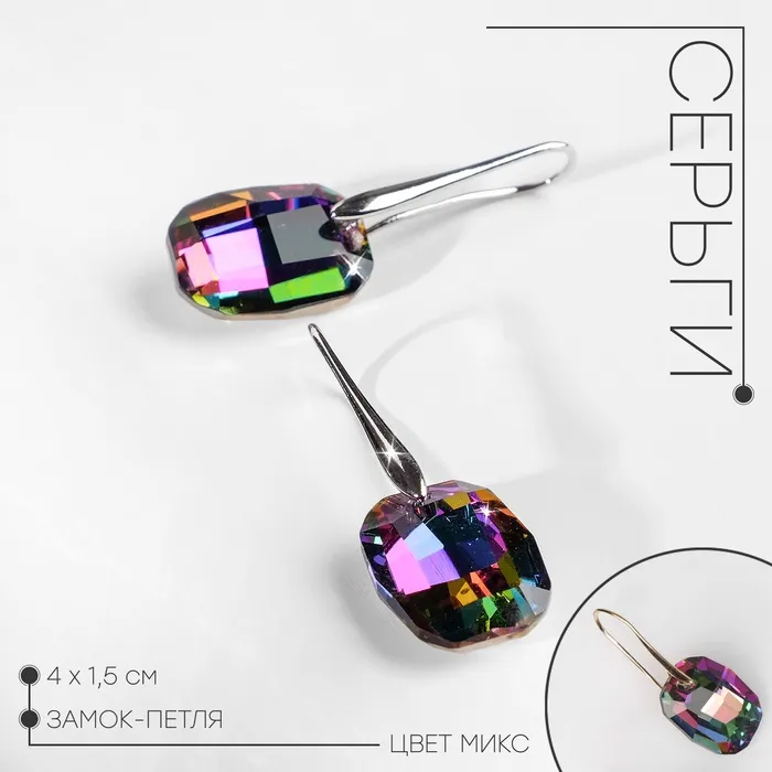 Серьги со стразами «Иллюзион» овал, миксы — Характеристики